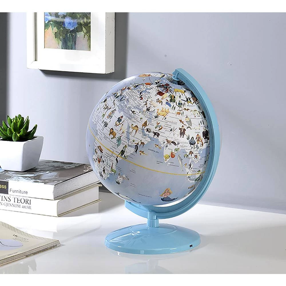 Discover the wildlife world. While rotating the globe, you will see the huge diversity of animals, birds and marine life in their natural habitats. Light up this globe to showcase the Animals on the geographic map, or turn off the LED lighting to see geographical features. 2-piece construction with a durable acrylic light blue base creates a lasting design and to showcase the blueness of the atlas world. Rotating Globe on a light blue acrylic Frame and Base. LED lighting gives bright, long-lasting illumination. No Assembly Required.