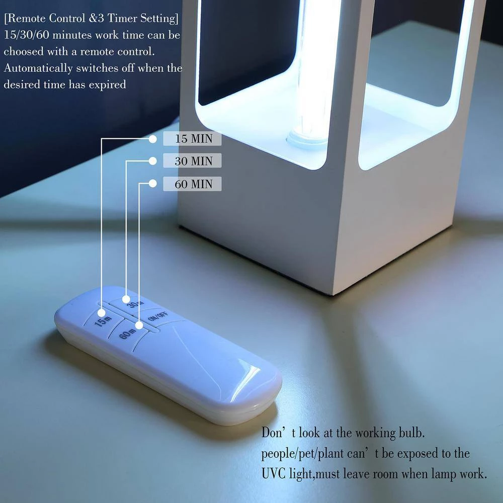 The UV germicidal lamp is suitable for sterilization, disinfection, deodorization removal. Volatile ozone can spread to every corner, can purify the air and remove odor. Give your family a healthier living environment. 99% sterilization rate. It can be operated remotely through doors, walls, cabinets, etc. There is no limit on the angle, and you do not need to worry about being injured by ultra-violet radiation during operation. For Health Use for Home, Loft, Office, Factory, School, Restaurant, Clinic, Hospital, Basement, Mall, And other big area places. The difference between no ozone and ozone: ozone is a gas that has the function of sterilization and disinfection, even if it is an object blocking, the gas is also distributed throughout the room without being affected by obstacles. CAUTION: This device will emit very strong UVC light, it will harm your health, so please don’t stay together with this light, when it turns on (include your pet, plant, and others.). All-Purpose clean lamp: can use for bedroom, quilt, pillow, bath towel, bathroom, toilet, kitchen, HVAC duct, etc. The radiation can cause skin and eye burns, excessive inhalation of ozone is harmful to human. It require people, animals and plants waiting outside during cleaning harmful substances in the air, after completed it also need to wait more than 60-minutes for ozone decomposition completing.