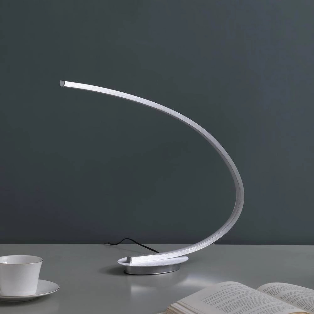 Simple at first glance, intriguing upon closer inspection. The Eli Brush Nickel LED Arc Tube Table Lamp is a distinctive piece that will fill a living room or a bedroom with a rich, full-bodied glow. Its made out of a slim, long, curvilinear coordinates piece of Aluminum that is extruded and rolled into a looping design to itself, which gives it an alluring and unique appearance. The inner portion of the loop features an LED light source that is covered by a flexible Silicon Rubber diffuser, and the light shines both up and down for more robust illumination. The clean and simple Eli LED table features improved design and feather-light concept. Minimalist allure is the distinctive feature of this metal energy-efficient LED reading table lamp. You’ll love how this lamp meets the stylish standards of your minimalist home. The energy efficient LEDs produce a warm light that will last for up to 50,000-hours.