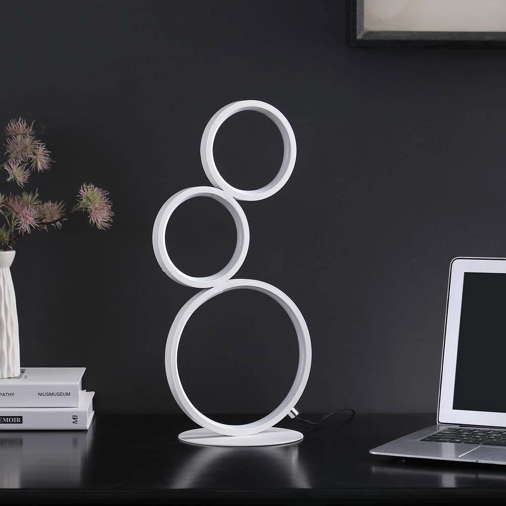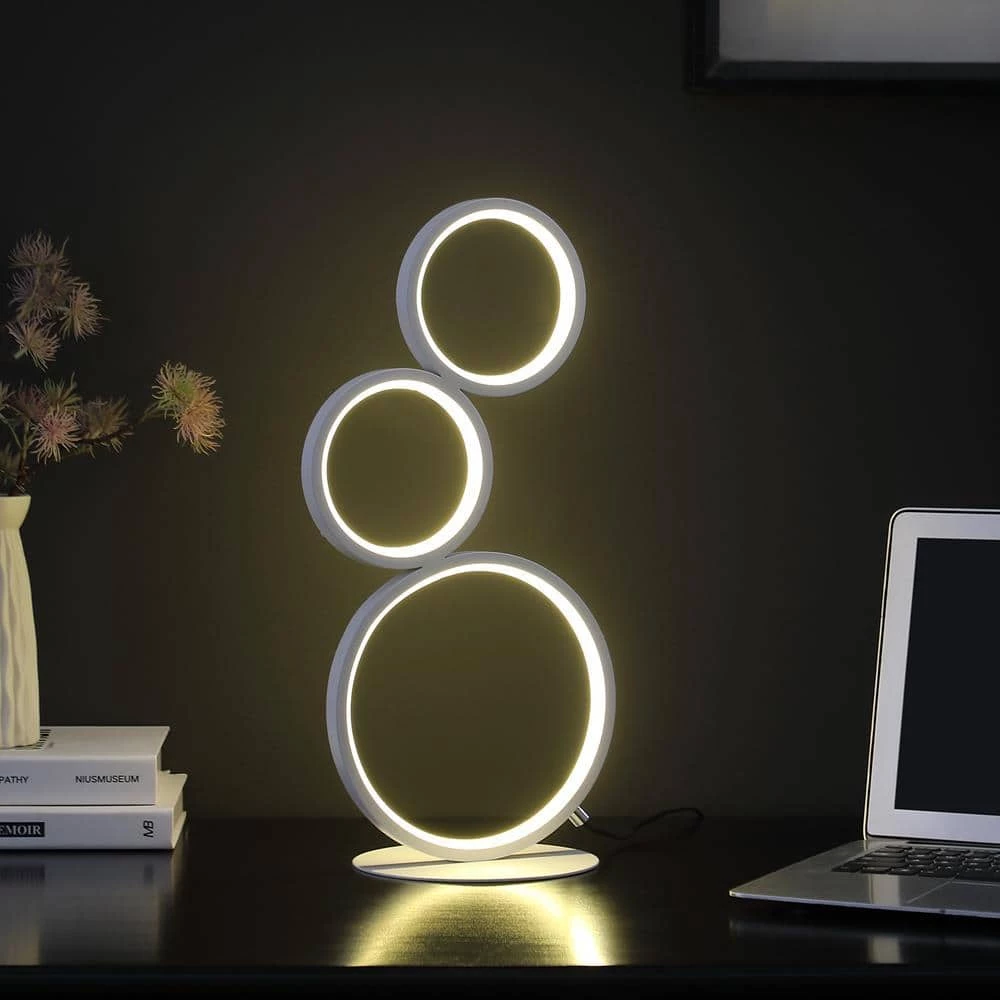 3 Ring Shaped Odu LED Table Light create Minimalist 3-Light Night Lamp for living room, office, hallway, nightstand or bedside in your bedroom. Highly futuristic and highly energy efficient, The LED Table lamp is the definition of where contemporary style intersects with modern technology to create a truly revolutionary light that’ll continually captivate the attention and imaginations of you and your guests. This multi-functional lamp gives a simple and elegant visual impression, which can be used for different types of lighting needs and as a special assortment. Well made to ensure quality lightning for many years. An integrated LED bulb lines the inside the frame and emits a bright clean light throughout your space. The on/off switch is located on the cord so you never have to fumble around in the dark. Exceptional bright white light perfect for reviewing documents or architectural designs.