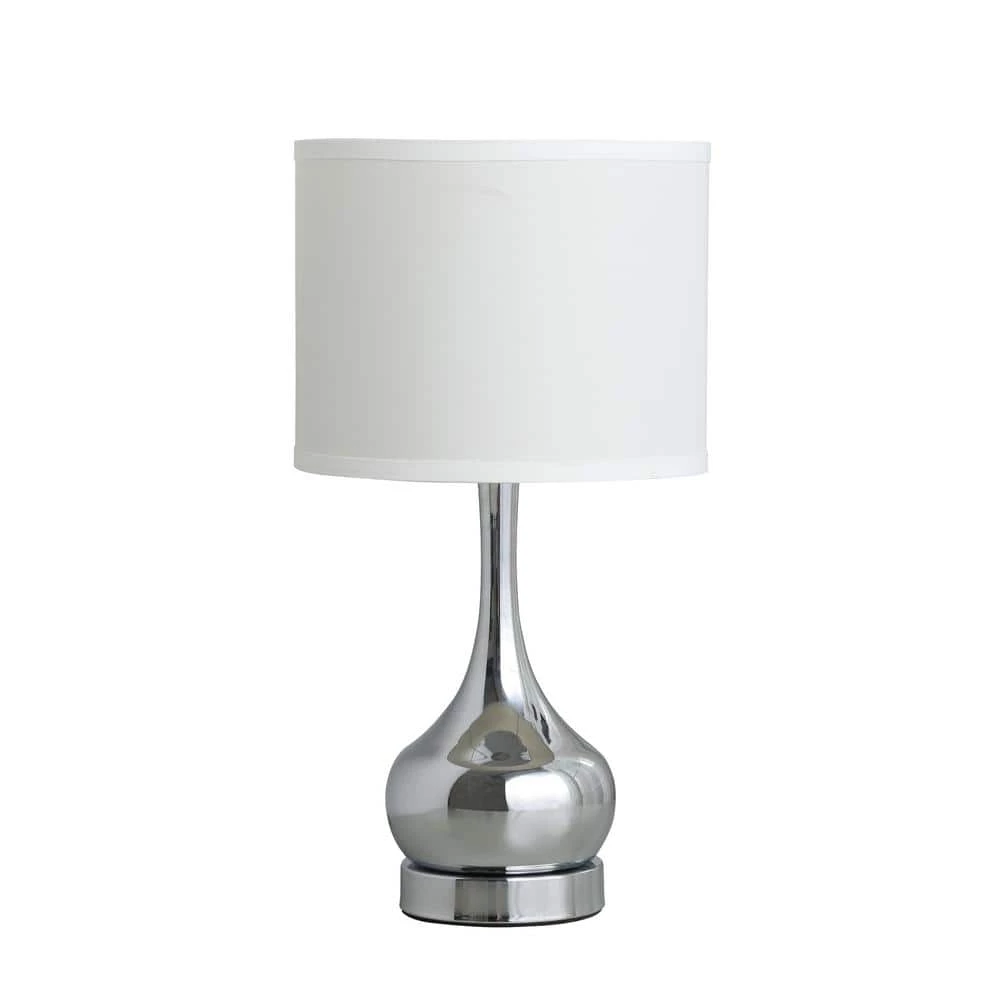 Featuring a classic urn shape with elegant lines and a contemporary edge, the Corrine polished chrome silver metal table lamp is completed in a stunning brushed steel finish. This table lamp is inspired by retro midcentury lines completed in a sleek contemporary brushed steel finish makes a stunning debut in any style of decor. A white cotton/linen drum shade adds texture and beauty. This table lamp adds lighting options to any room in the home. Add this lamp singularly or in pairs for a timeless style upgrade.