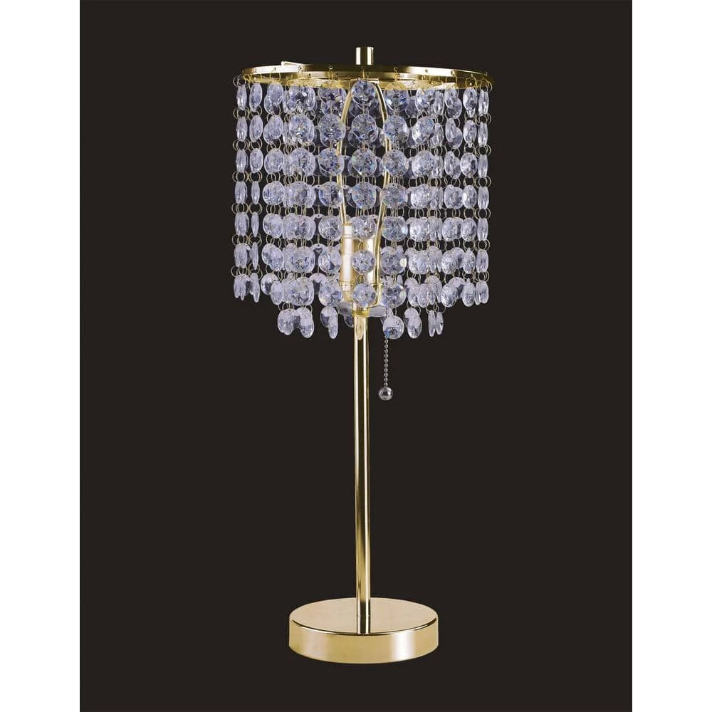 A clean touch to this delightful 20.25 in. H Gold lamp is ideal for transitional or glam style rooms and makes an unexpected glistening accent mixed among traditional furnishings. Clear crystal inspired beadings surrounding the lamp with hanging crystal inspired, make this lamp a must have. The lamp displays intricate details all along the lamp body, while the polished gold finish gives it a slightly vintage feel.