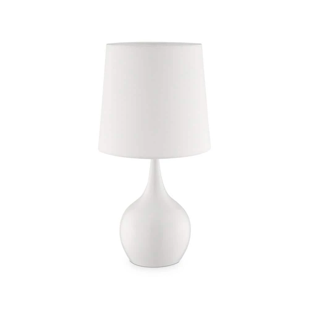 This fun and stylish table lamp offers a down to Earth, contemporary allure that will liven up your decor. Varying powder cloud white combined with a seemingly crisp drum shade, make for the perfect inspiration piece to a decorating scheme. This Niyor Mid-Century Table Lamp features a 3-way reliable touch sensor control that enables you to adjust the light you need with just a touch of your hand. No more trying to find the switch in a dark room, this lamp is always ready for your touch. Simply touch any metal surface and you will put this lamp through its paces of low-medium-high-off. Use a single level light bulb, no need to use a 3-way bulb. Features a solid white shade giving this lamp a crisp, simplistic accent. The shape of the table base is just discernable with it’s goulash gourd shape. Available in 3 colors.