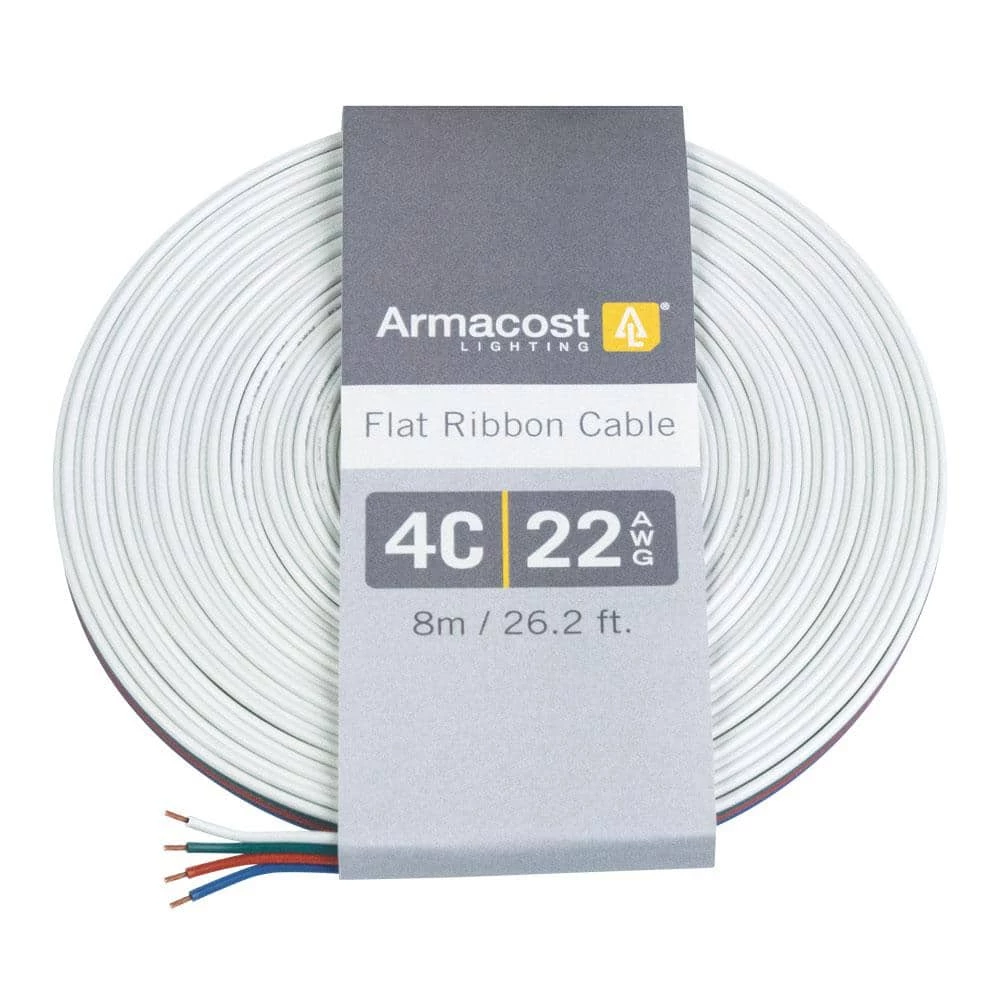 Armacost Lighting’s 22 AWG 4C Flat Ribbon Cable is optimized for use in a wide range of applications, including LED lighting installations such as white or single color LED strip light installations, LED tape light installations, CB radios, stereo/sound equipment and other low-voltage appliances. The 22-Gauge ribbon flat cable is easy to strip, cut and reconnect for extending custom installations. Made using premium quality copper and UL rated, flame resistant PVC. The 22-Gauge wiring is 24 ft. L (8 m) and optimized for LED light installations calling for flat ribbon cabling.