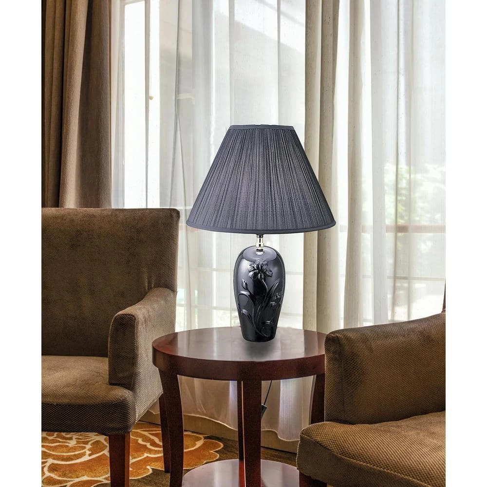This black lovely lamp brightens your home with a classic design. The simple flower on the vase adds charm to your decor. This lamp can be placed anywhere in the house or maybe even in an office.