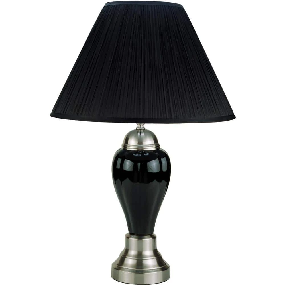 Place this in any room to give the room a classic style. This lamp blends in perfectly with different rooms especially to vintage, contemporary, modern, and/or basic. Let this classic modern black ceramic lamp bring the brightness in you. Bold color with brushed silver accents adds a decorative element to any room. Made of Black ceramic pumpkin finish with silver metal trim and topped with an empire uno color match linen shade.