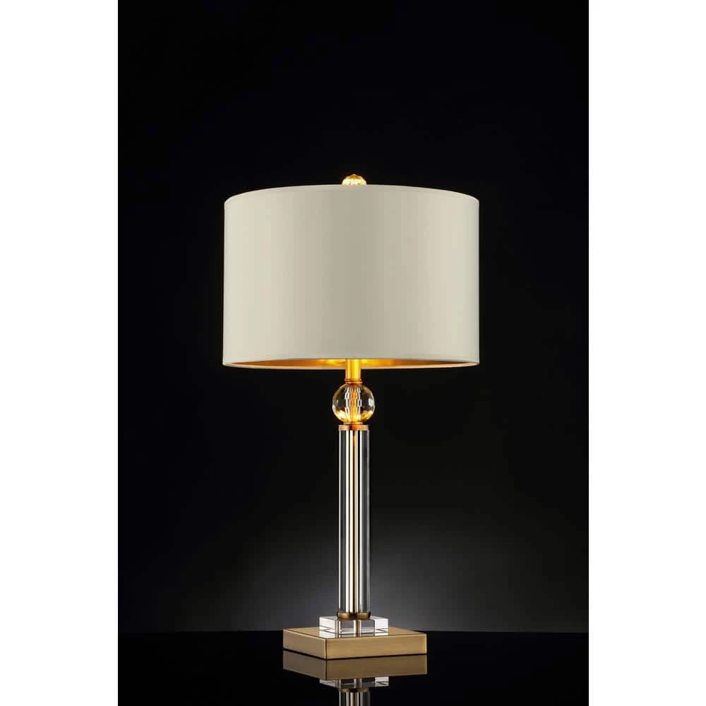 Crisp and majestic, dignifying design of this 29.5 in. Perspicio solid crystal column table lamp is inspired by traditional Corinthian order with a modern twist life-style. Masterfully detailed from the single leveled matte gold metal base to the graceful Corinthian capital this table lamp is a showcase of superb craftsmanship. Ornate crystal orb sitting on the column style developed in ancient Greece and classified as 1 of the Classical Orders of Architecture. The Corinthian style is more complex and elaborate. The base of this distinctive modern table lamp is made from a single crystal column, with grooves and ridges at the top and bottom, and a sleek sq. ft. for support. Let this wonderful lamp brighten up your living space.