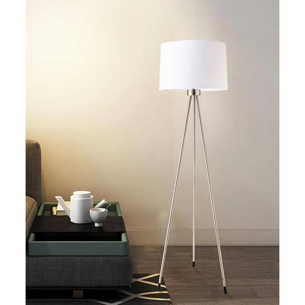This contemporary and stylish floor lamp will brighten up your room while adding a touch of modern. With the newly design comes with 3 metal chrome legs to increase balance and stabilization. The white shade is made of fabric that can be easily clean using a damp cloth or a duster.