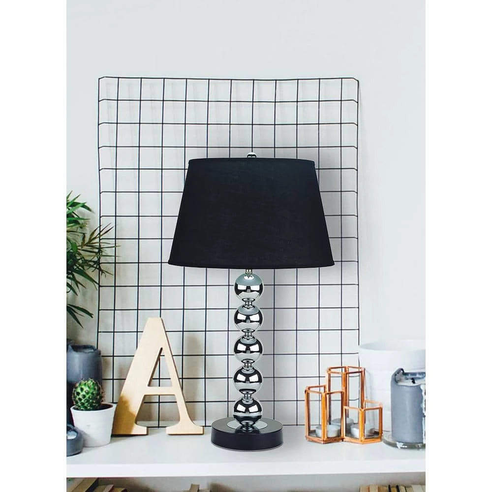 Light your room in style with this Metal Black/Chrome Table Lamp. The sleek chrome base perfectly complements the modern black shade. Ideal for a bedroom, den or anywhere you want a striking fixture to brighten your room.
