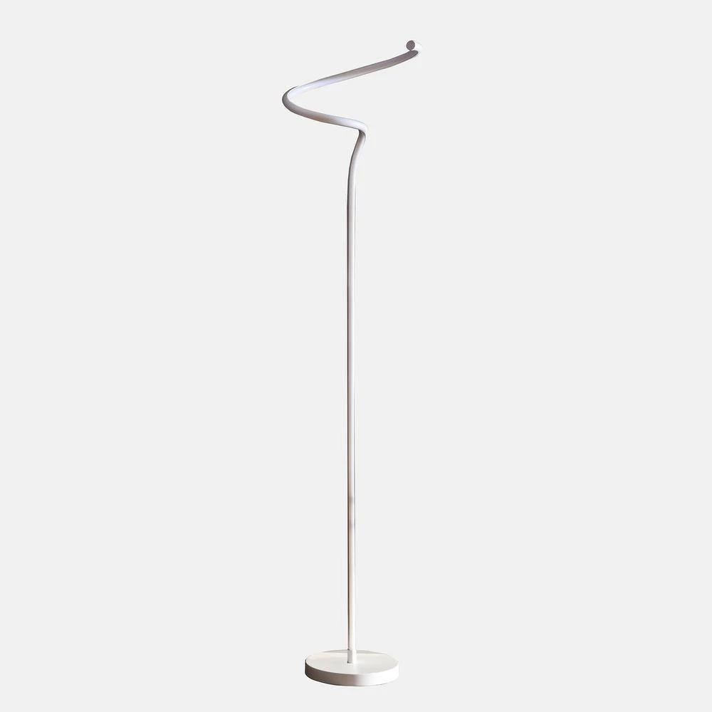 Brighten up a modern space with the stunning glow from this Curvilinear S-Curve Spiral LED Angled floor lamp. Revel in modern expressionism with the sculpture-inspired silhouette where the LED Bulb becomes part of the silhouette of this floor lamp. Constructed of metal and aluminum, the matte white finish boasts a reflective and visually striking glow. Interesting twists and curves bring a contemporary update to the energy-efficient LED light. Great for an up to date living room or beside a nightstand, this lamp makes a bold statement and Illuminating a living room space efficiently. A Step On On/Off located on the Black Cord for easy access. Airy and streamlined Angled Outline Floor Lamp is an easy fit in any space, with a slim, round shaped base that fits easily into corners or tight spaces next to a sofa. The design makes a great light source next to any living spaces, or use in an office setting as a bright work light. Integrated LED fixtures come built-in into the fixture. They are designed to provide a specific color and Lumens output and they do not have typical bulbs that can be replaced. Integrated LED fixtures typically last for many-years, often a decade or more.