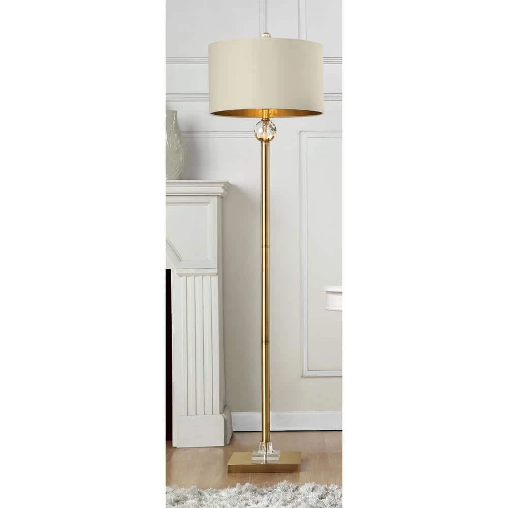 Crisp and majestic, dignifying design of this 63.25 in. Perspicio solid crystal orb floor lamp is inspired by traditional Corinthian order with a modern twist life-style. Masterfully detailed from the single-leveled matte gold metal base to the graceful Corinthian capital this floor lamp is a showcase of superb craftsmanship. Ornate crystal orb sitting on the gold column style developed in ancient Greece and classified as 1 of the Classical Orders of Architecture. The Corinthian style is more complex and elaborate. The base of this distinctive modern table lamp is made from a single gold matte body pole atop with a crystal prism orb and a sleek square foot for support. Let this wonderful floor lamp brighten up your living space.