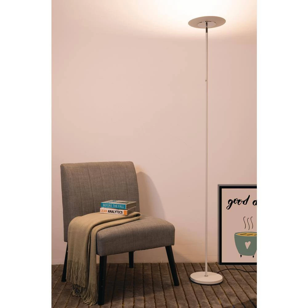 Make a design statement with this precision engineered Satin White LED torchiere floor lamp. In a deep matte satin white finish that will complement a variety of decor, this lamp comes with an On/Off multi-functional push-button dimmable switch placed on the linear Body Pole for easy access. Stepless Switch and Dimmable. Press the 1st time to turn ON, press longer to adjust the brightness of the lamp, lets you adjust the light levels to suit your taste and mood. If press the third time to turn off the lamp. Adjustable Head that can rotate 360° Horizontally and also adjustable vertical plane at 90°. Beautifully simple and energy-efficient LED lighting. The satin white matte finish and sleek contemporary styling of this bright and efficient LED light make it an ideal enhancement to modern home decor styles. Integrated LED fixtures come complete with the LED arrays already built into the fixture. They are designed to provide a specific color and Lumen output and they do not have typical bulbs that can be replaced. Integrated LED fixtures typically last for many years, often a decade or more. Minor Assembly Required.