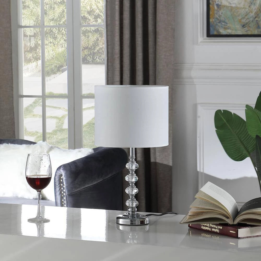The purity of clear and crystal cut is celebrated in the beautifully faceted Kayli crystal orb table lamp. This Unique Design Features 4 of Crystal Cut orbs, balancing on a Shiny Chrome accents that’s displayed on a candlestick silver chrome steel round base. Channeling cultural and historical influences, this lamp creates distinctive artisan-crafted lighting that make a lasting impression. This Crystal Table Lamp offers a light, bright accent to your space. Blend the best of what is new in home fashion with this great designs in updated designs that fit perfectly with an array of styles. Handsome and sophisticated, this stunning lamp will brighten a study, library or living room in styles from classic to soft contemporary. The design features a cube orbs style base, made from cut crystal, which bounces light all around the room from its many facets and providing a well rounded element to the design. Place this lovely design anywhere in your home that needs illumination and modern elegance.