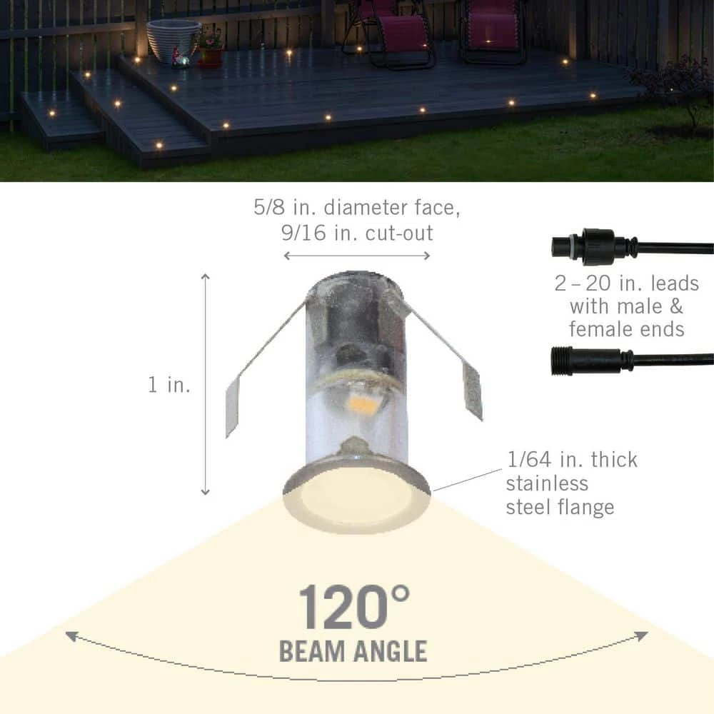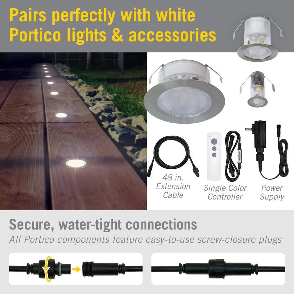 Armacost Lighting’s Portico White Recessed Outdoor LED Lights are components in. The exclusive Portico System that also includes a proprietary LED light controller, LED Power Supply, and extension cables for large installations. The stainless steel waterproof LED lights feature 1-piece construction and are flush, recess mountable in any outdoor space including decks, docks, walkways, and steps. All Portico system components feature easy to use screw-closure plugs for secure, water-tight connections.