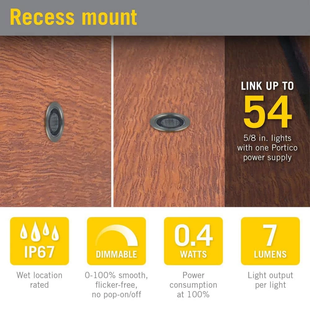 - Link up to 54 15 mm (5/8 in.) portico lights with 1 portico LED driver