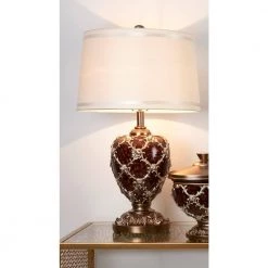 28.75 in. Curvae Stencils Brown and Gold Table Lamp by ORE International