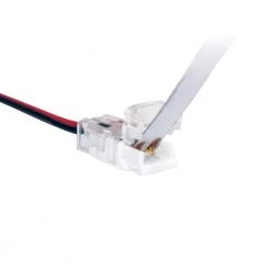 Professional grade SureLock connectors are a fast and easy method for making Low-Voltage wire connections to LED tape lighting without soldering. These connectors feature extra wide internal contacts and a sturdy locking pressure pad door to ensure a secure and reliable connection with the copper pad contacts on LED tape lighting. The connectors with wire (8 in. length) are used for going around corners, or cut wire in half and easily splice to other wires to create power leads (“jumper cables”) for bridging gaps and extending wire lengths. The splice connector will join two strips to create a continuous run of LED lighting.