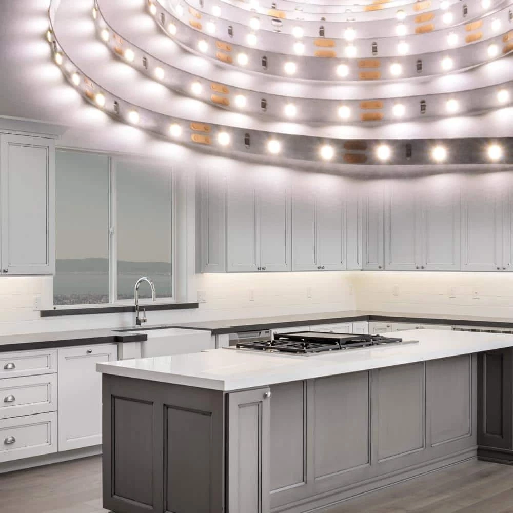 Armacost Lighting’s RibbonFlex Home AC Dimmable LED Tape light kit is the perfect all-around solution for any kitchen, bedroom or living room lighting installation. The soft-bright white (3000k) LEDs are fully dimmable from 0 to 100% brightness, when using any LED compatible in-wall dimmer (not included). The LED light strip kit features an AC dimmable power supply that can be plugged in or hardwired for custom installations.