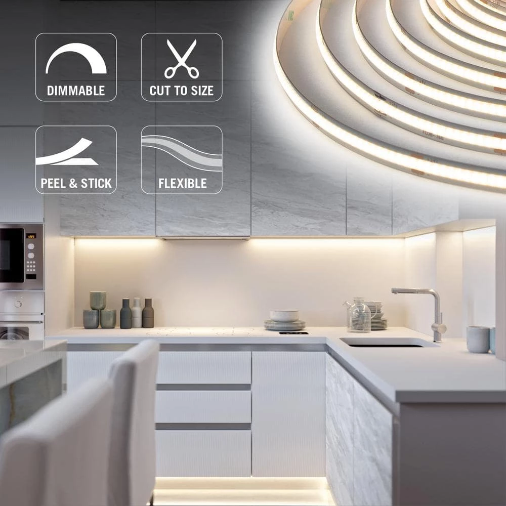 - Continuous light display: features COB super bright LEDs, making it the perfect LED strip light for a consistent, dot free look