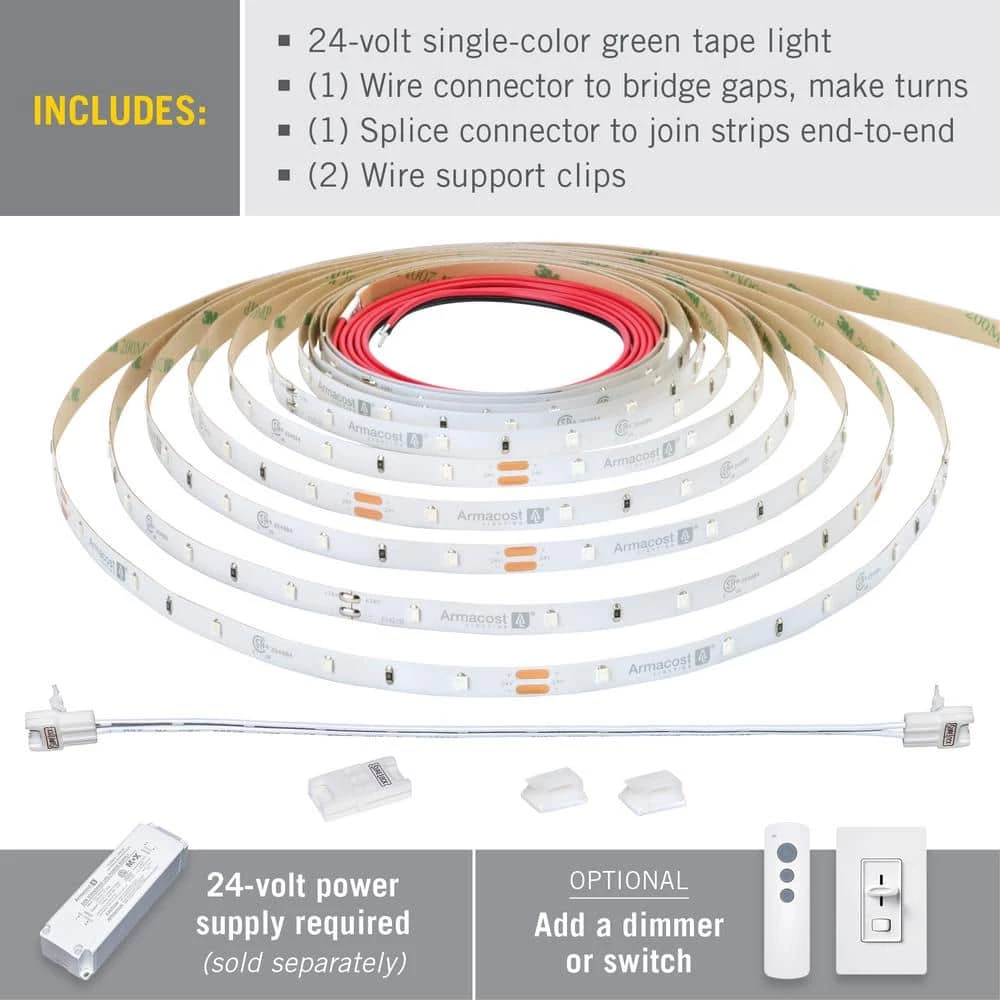 RibbonFlex Pro 24V Single Color LED Strip Light Tape from Armacost Lighting delivers a dedicated single color display, ideal for commercial displays, signage, safety lighting, and creative home decor projects. Featuring 30 ultra-bright LEDs per meter, it is the perfect LED strip light for a subtle accent light. Install the adhesive 24 V LED strip lights in a bar, restaurant, event space, dark room, or home. The vibrant colors can also be used for holiday decor and safety/courtesy lighting.