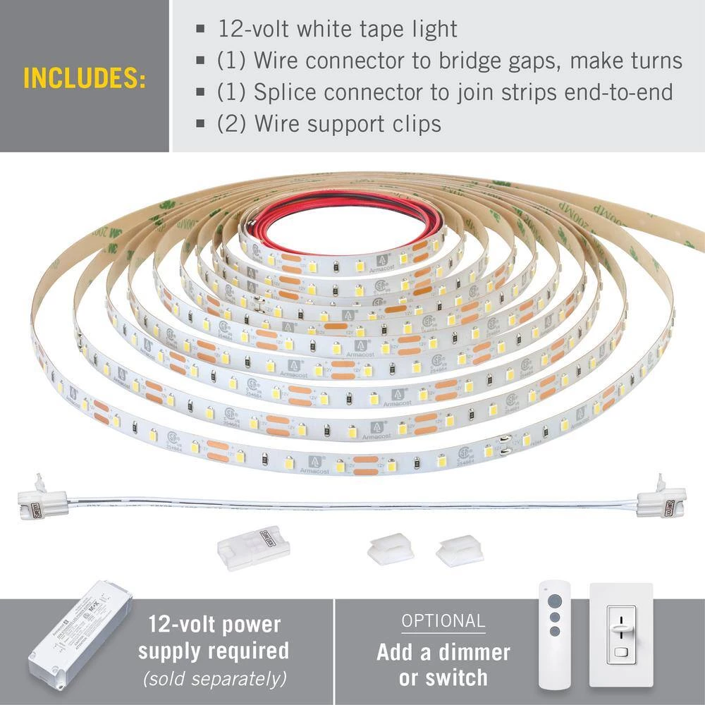 Armacost Lighting’s RibbonFlex Pro LED Tape Light is the perfect LED light strip for low-voltage, energy-efficient accent lighting projects. These LED strip lights are designed to meet the layout and installation requirements of lighting professionals and feature high quality, professional-grade components that are longer lasting and create a premium look.12V strip lights are easy-to-install and feature 3M adhesive backing for a permanent hold. LED light tape is ideal for many applications including under cabinet lighting, tray ceiling lighting, toe kicks, RVs, boats, motor homes and commercial spaces. RibbonFlex Pro LED Tape Light is part of Armacost Lighting’s premium-quality component-based system, designed for custom installations.