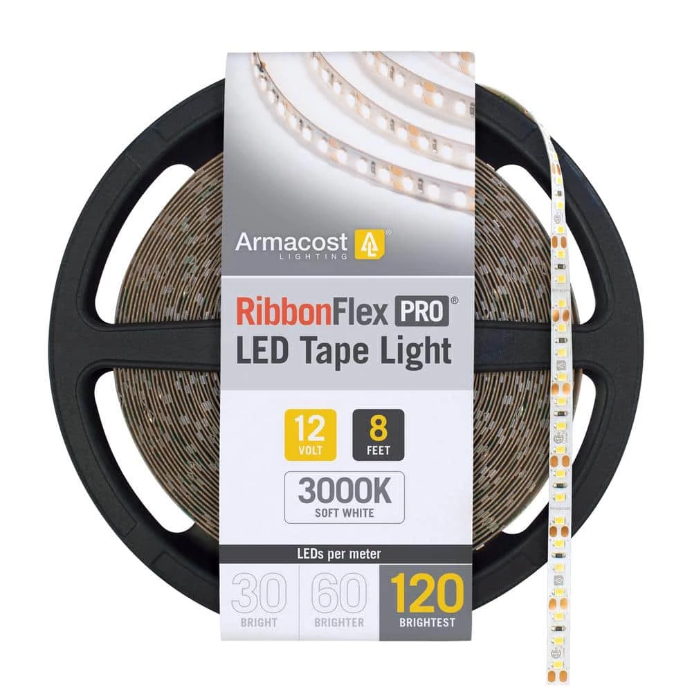 Armacost Lighting’s RibbonFlex Pro LED Tape Light is the perfect LED light strip for low-voltage, energy-efficient accent lighting projects. These LED strip lights are designed to meet the layout and installation requirements of lighting professionals and feature high quality, professional-grade components that are longer lasting and create a premium look. 12V strip lights are easy-to-install and feature 3M adhesive backing for a permanent hold. LED light tape is ideal for many applications including under cabinet lighting, tray ceiling lighting, toe kicks, RVs, boats, motor homes and commercial spaces. RibbonFlex Pro LED Tape Light is part of Armacost Lighting’s premium-quality component-based system, designed for custom installations.